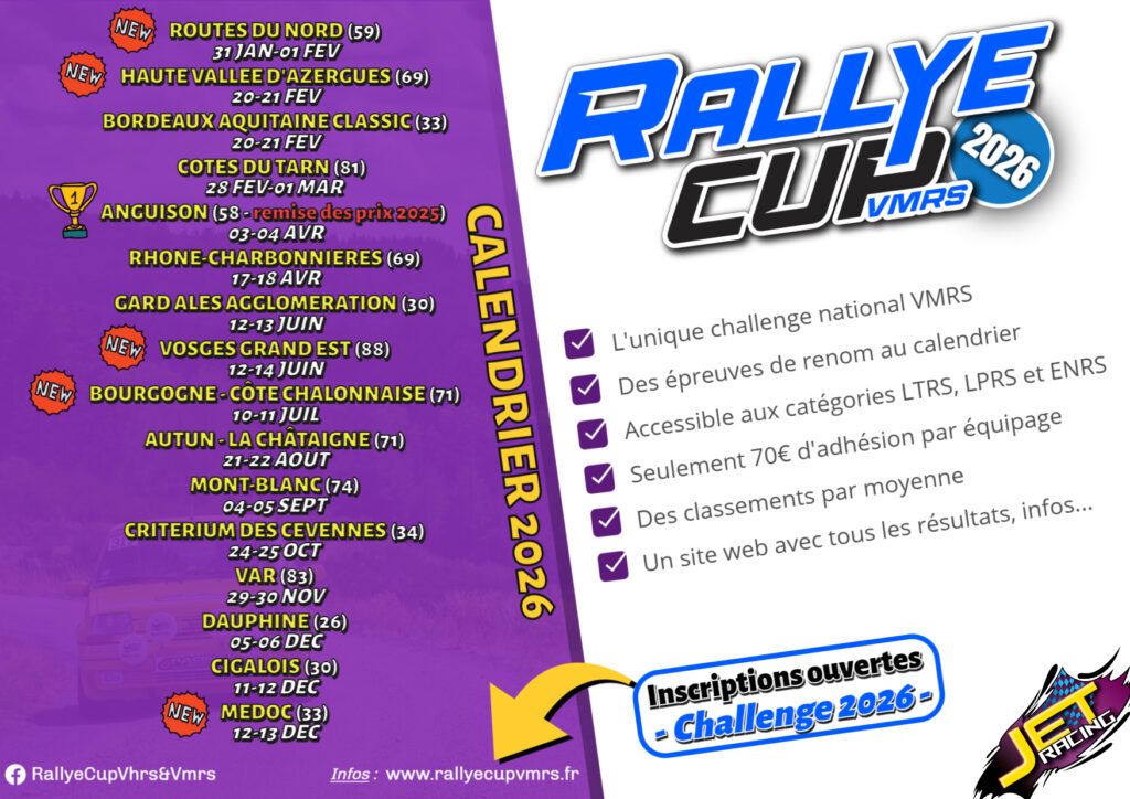 Les partenaires de la RALLYE CUP VHRS & VMRS 2026, ainsi que les nouveaux trophées internes au challenge, vous seront présentés dans les prochains jours.